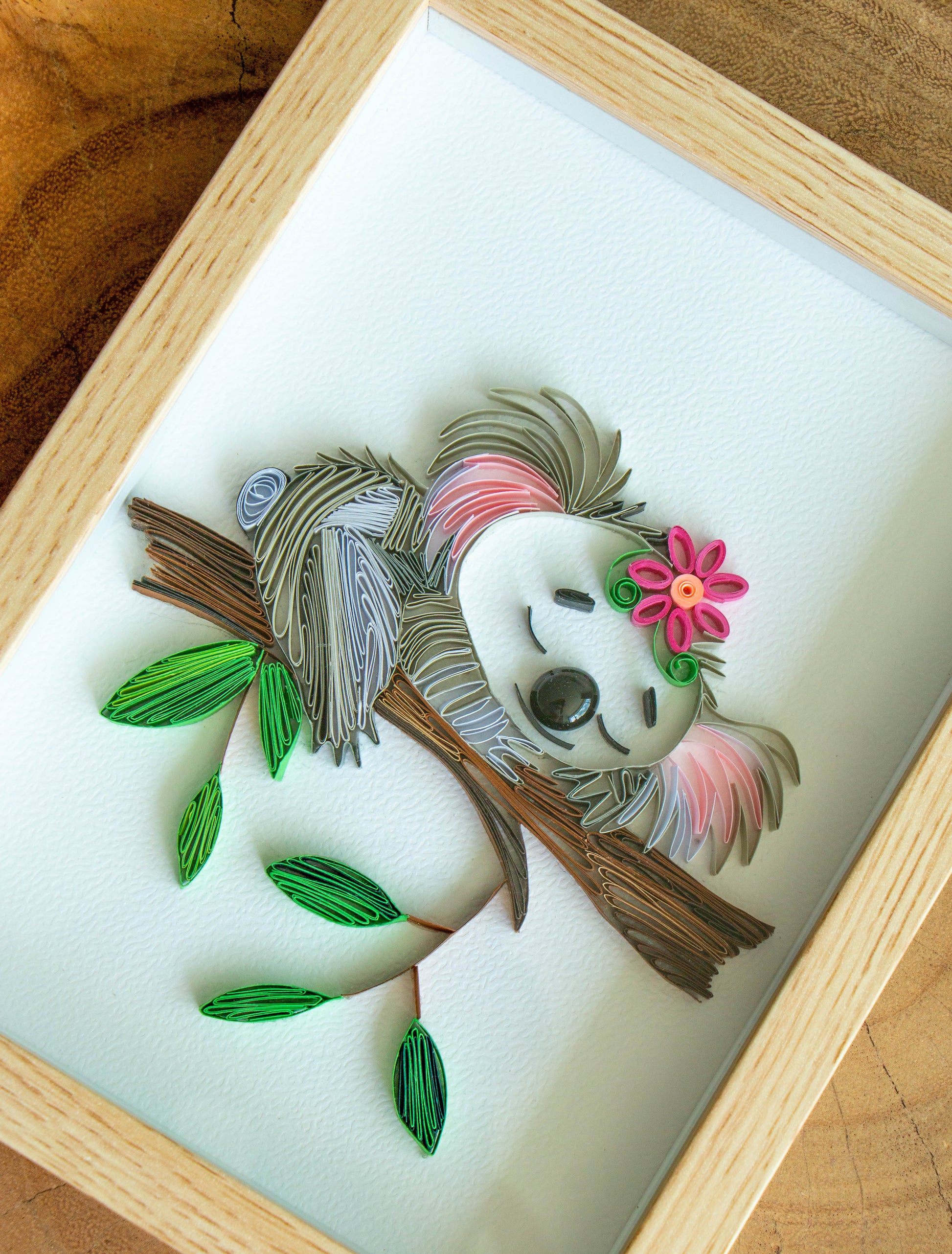 Small baby koala from paper. Baby room present quilling artwork. ArtyMargarita.com Unique artworks from paper.